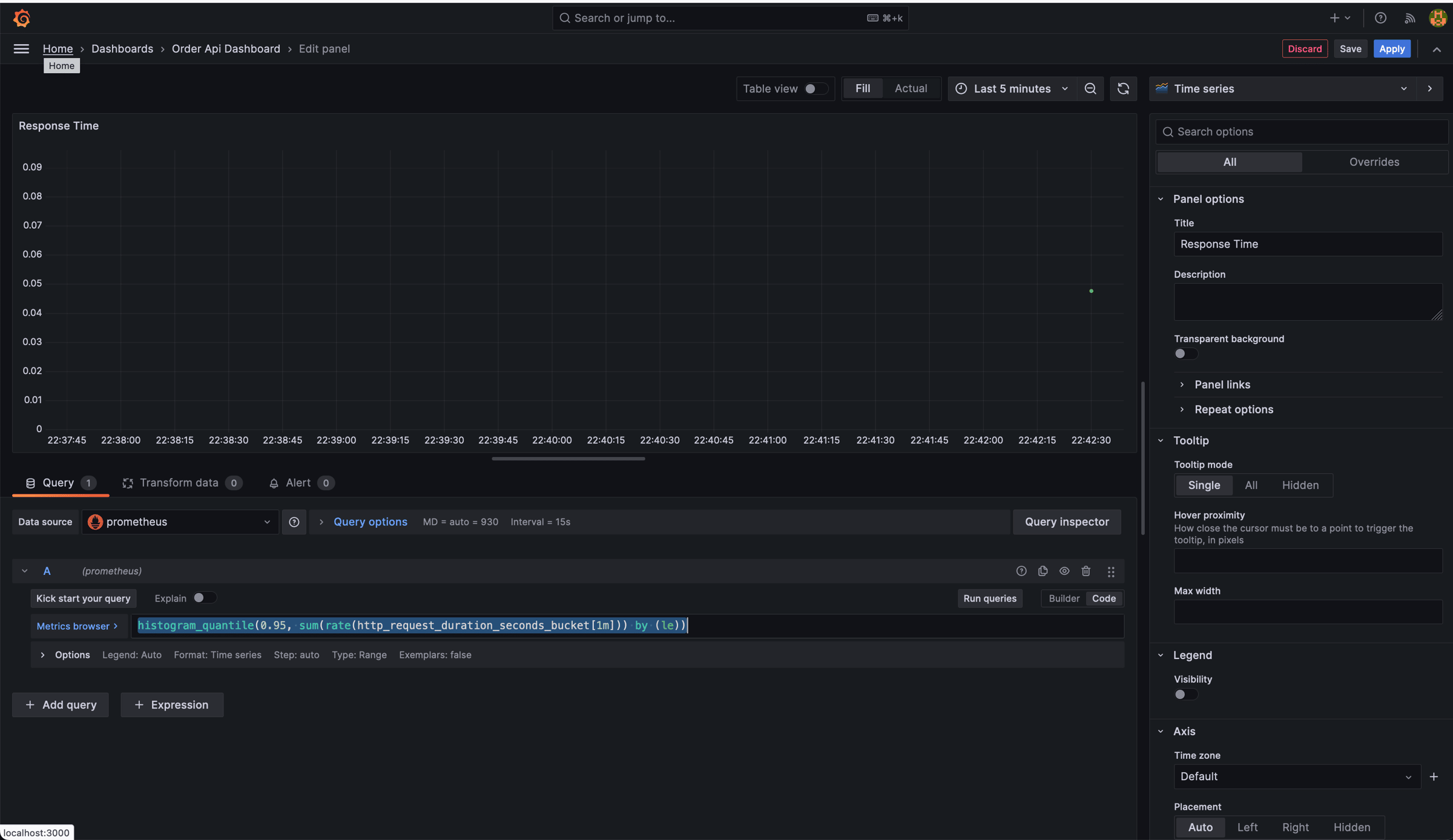 histogram_quantile(0.95, sum(rate(http_request_duration_seconds_bucket[1m])) by (le))Shipped Orders (Custom Metric): For the